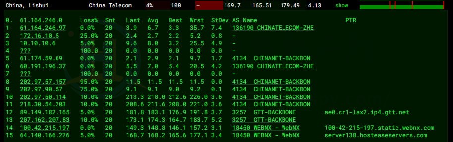 以下是国内(丽水)连到HostEase美国虚拟主机方案的三网路由情况: