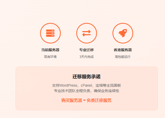 购买HostEase香港服务器即享免费专业迁移服务,从其他服务商无缝迁移,零停机时间,数据完整性保障。
