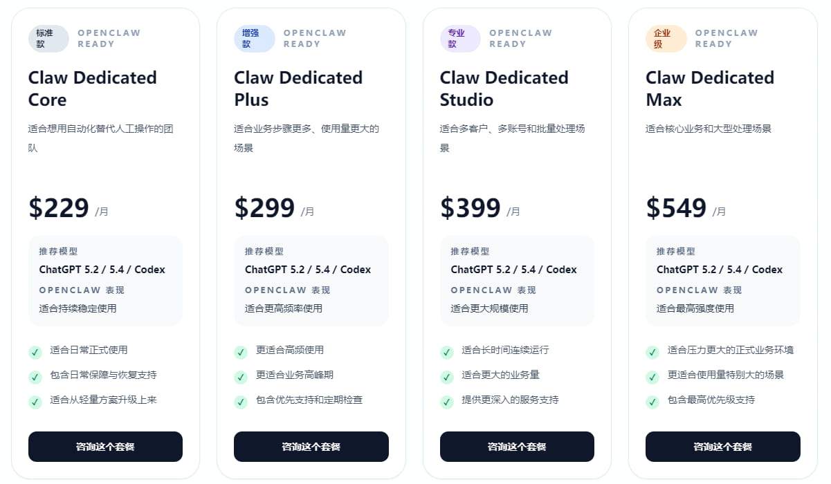 HostEase提供从已有服务器的一次性部署,到可直接购买的托管套餐,都按OpenClaw的真实运行需求来设计。