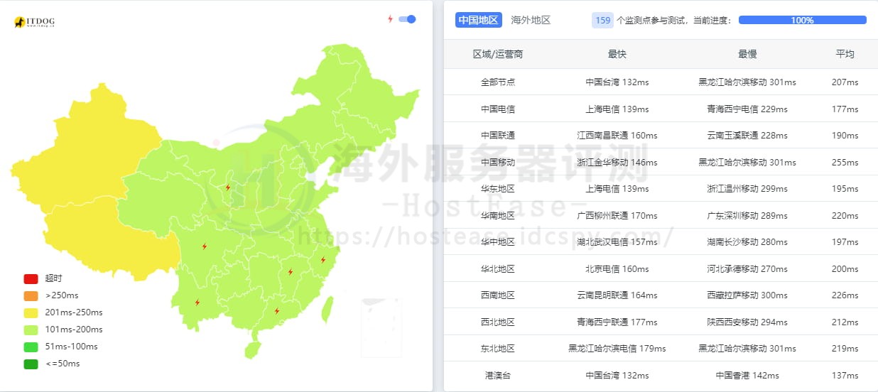 HostEase美国GPU服务器全国三网Ping的平均延迟在207ms,其中电信网络延迟在177ms,联通网络延迟在190ms,移动网络延迟在255ms,而港澳台地区延迟在137ms左右。