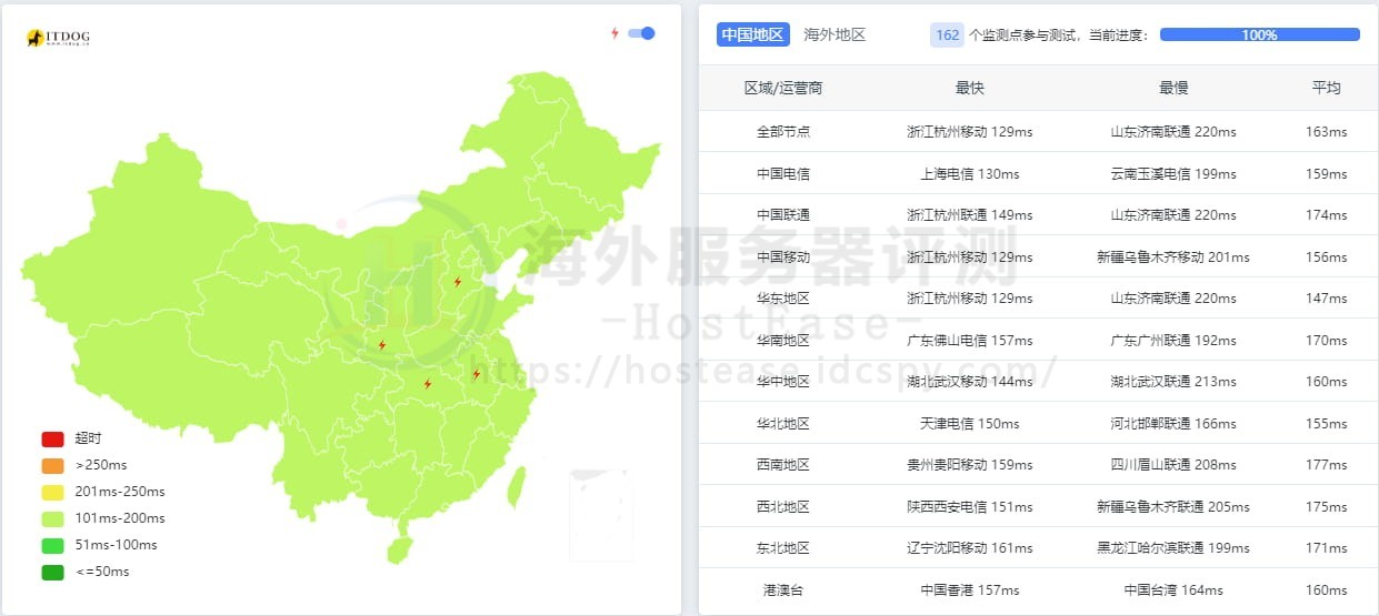 Ping值:HostEase美国洛杉矶VPS到国内各地区的平均速度为163ms。